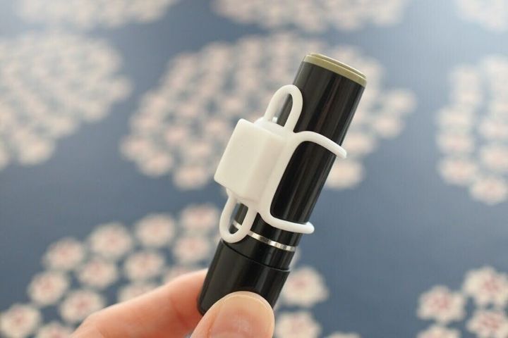 シリコーン樹脂でできているのですごく柔らかく、リングが伸びることでハンコやペンをしっかりホールドしてくれるようになっていますよ。