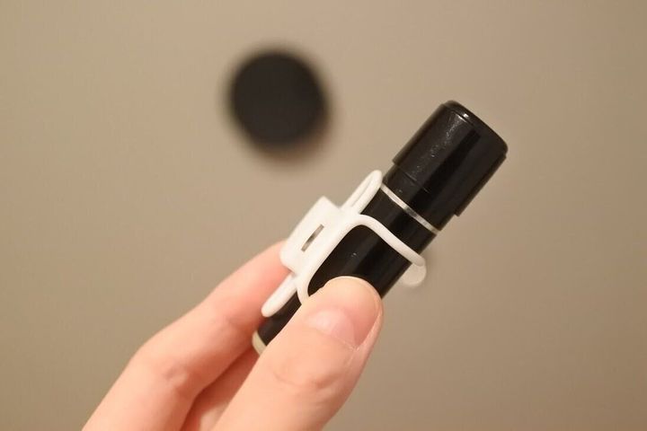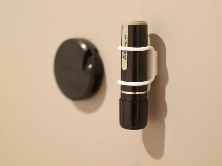 ホルダーにセットしたまま使えるので、宅配便がきたら玄関ドアにくっついているハンコをパッととって、使い終わったら玄関ドアにくっつけるだけ!