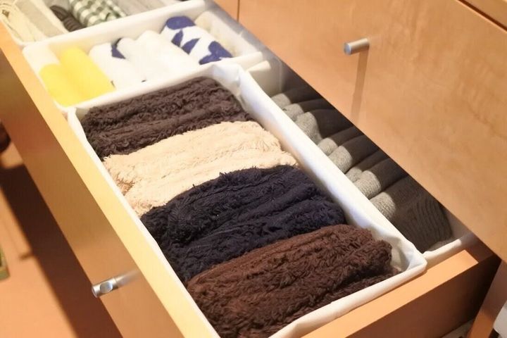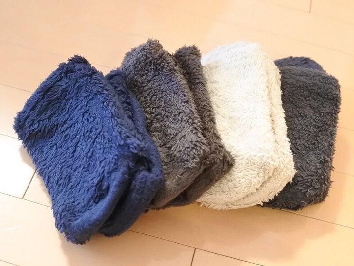 もう1つの良いところはスッキリ収納できること!足なり直角なので二つ折りに綺麗にたためてスッキリ収納することができますよ。(無印良品の高さを変えられる不織布仕切ケース大にぴったり並べて収納することができます!)カラー豊富なので、家族で色分けもできるのでオススメですよ。無印のお店でぜひチェックしてみてくださいね。
