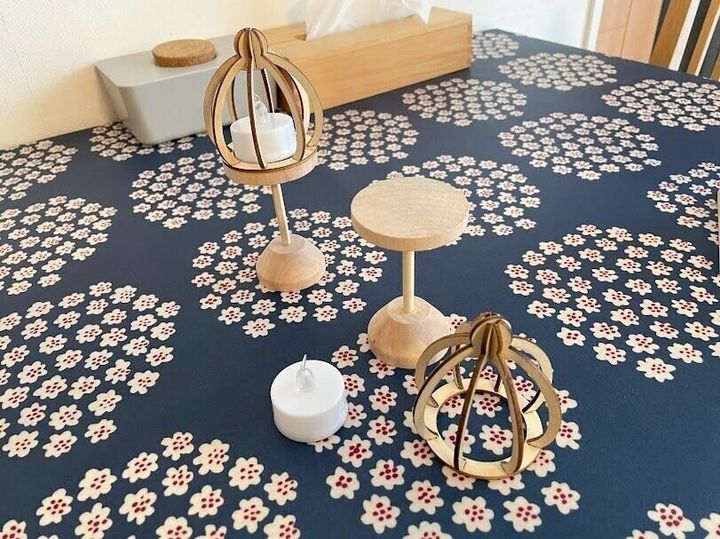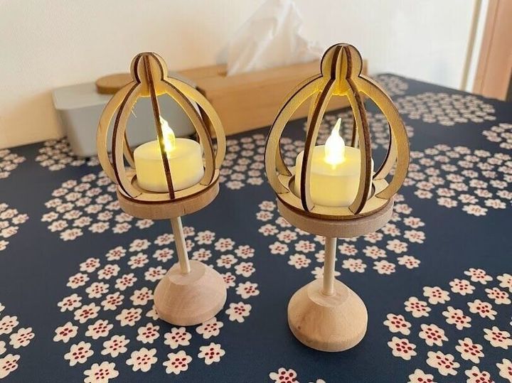 ぼんぼりは、3つ(台・LEDライト・かぶせ)に分かれていて台にポンと、乗せて飾るようになっていますよ。