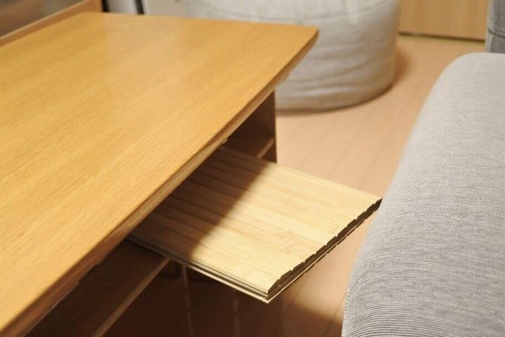 表面は湿気に強く傷がつきにくい竹になっていて、裏面は滑りにくいように布張りになっていますよ。