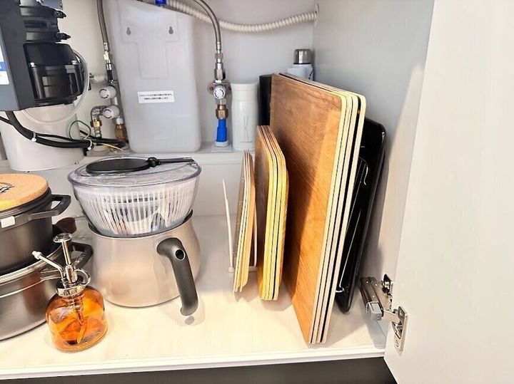 枚数が多いと収納に困りがちなトレー。積み重ねて収納すると場所をとってしまうし、取り出しにくいので、立てて収納されている方も多いと思います。ただ、立てて収納すると安定しないので、なだれがおきてしまうんですよね。
