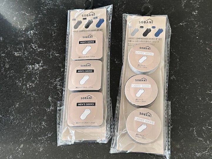 【3COINS】防災リュックにしのばせておきたい圧縮ソックス