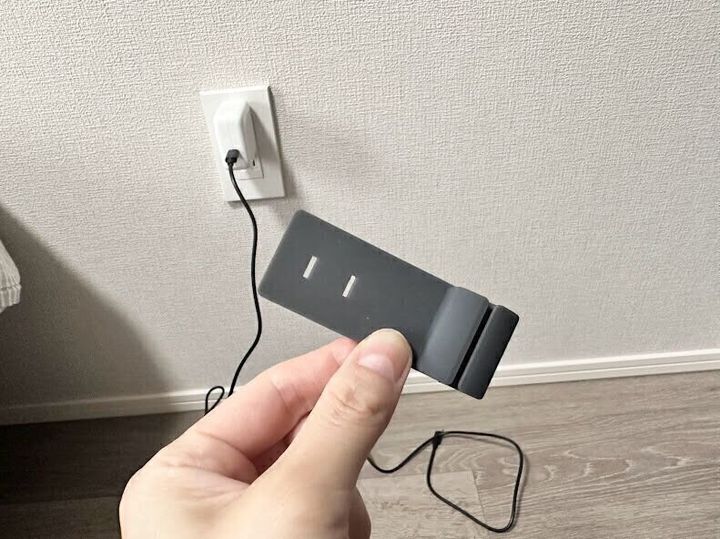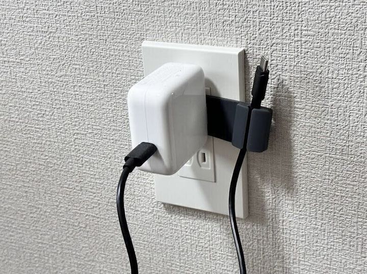 端子側をクリップに固定することで、充電したい時に、すぐ手に取りやすくもなりますよ。