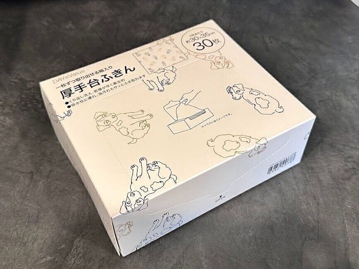 乾くのも早いので、繰り返し使えます。30枚入りなので、1日1枚、1日の終わりに捨てることを考えるとすごく衛生的だと思います。捨てる前にキッチンの床掃除をささっとして捨てるとさらに気持ちいいですよ。台ふきんを清潔に使うためには漂白したり、煮沸したりする手間がかかりますが、この台ふきんなら時短かつ衛生的でズボラさんにぴったりだと思います。気になった方はぜひお店でチェックしてみてくださいね。