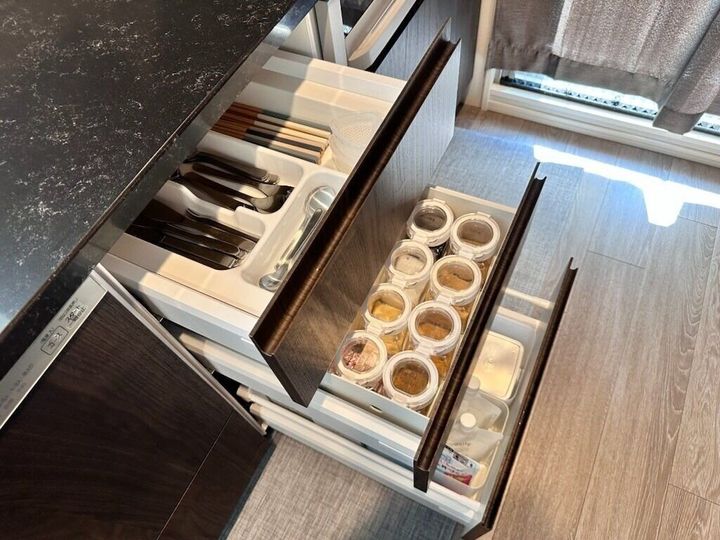 引き出しに収納ケースをセットして、ある程度仕切られたら、モノの住所を決めていきます!最初はどこに収納しようか悩んでしまいますが、ぴたっと収納できた時、嬉しくなるんです。そして少しずつ綺麗になっていく引き出しを見るのが楽しくなってくるので、キッチン全ての引き出しの整理整頓ができました!整理整頓が苦手で、何でもかんでもクローゼットや引き出しにしまいこんでいた私が、整理整頓が大好きになったのは、キッチンから始めたのがきっかけでした。ぜひ参考にして頂けたら嬉しいです。