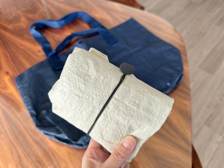 無印良品の大人気商品、長短2種類の持ち手付きのポリプロピレンシートトートバッグ(価格:499円)。購入したものをポンポン入れられる大容量なので、ショッピングへ行く時に必ずバッグに入れて持ち歩くのですが、小さくたたんでもかさばってしまうんですよね。バンドがあればいいのにって思っていたら、このマルチバンドが発売されて!バンド自体がやわらかくて伸びるので、適当にたたんでもしっかりととまる!コンパクトに持ち歩くことができるようになったので、すごく嬉しくなりました。エコバッグを小さくたたんで持ち歩きたい方にぜひ使ってみて欲しいです。他にもコンビニなどでもらう割り箸をまとめておくのにも便利ですし、充電ケーブルなどをまとめるのにもぴったり!持っているとすごく便利なアイテムです。ぜひ無印良品のお店でチェックしてみてくださいね。