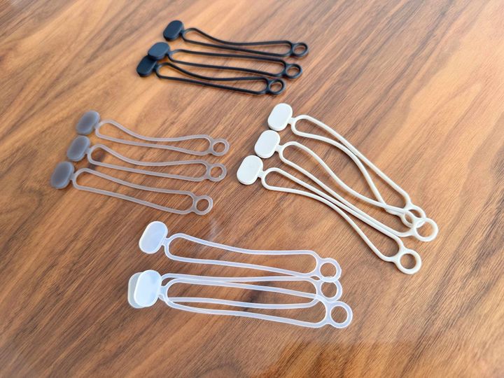 素材はシリコーンになっていて、ブラック・グレー・ホワイト・クリアが3個ずつ入っていますよ。