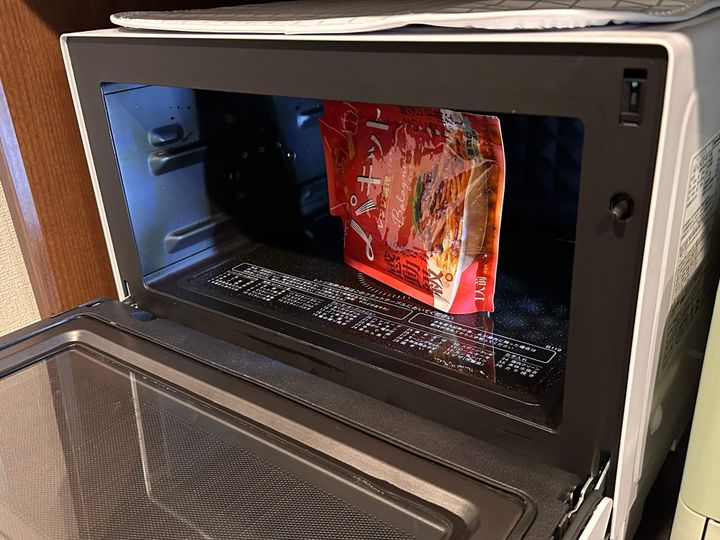 あとは袋の底をしっかりと広げて、レンジに立てて置いて、加熱するだけなんです。600wで1.4mm〜1.7mmのパスタを使用場合は、加熱時間5分、蒸らし時間8分。500wの場合は加熱時間6分、蒸らし時間8分30秒になります。早ゆでパスタを使用する場合は、蒸らす必要がなく、600wだと加熱時間5分30秒、500wの場合は、加熱時間6分と時短で出来上がりますよ!パスタの太さによって違ってくるので、加熱や蒸らし時間を自分好みに調整してくださいね。