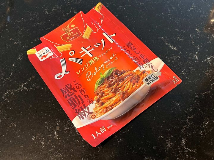 永谷園から発売されているパスタソース『パキット』という商品です。スーパーによって価格が違いますが、300円前後で販売されていますよ。用意するものは1人前パスタと水160mlだけで、鍋もパスタ容器もいらないんです!