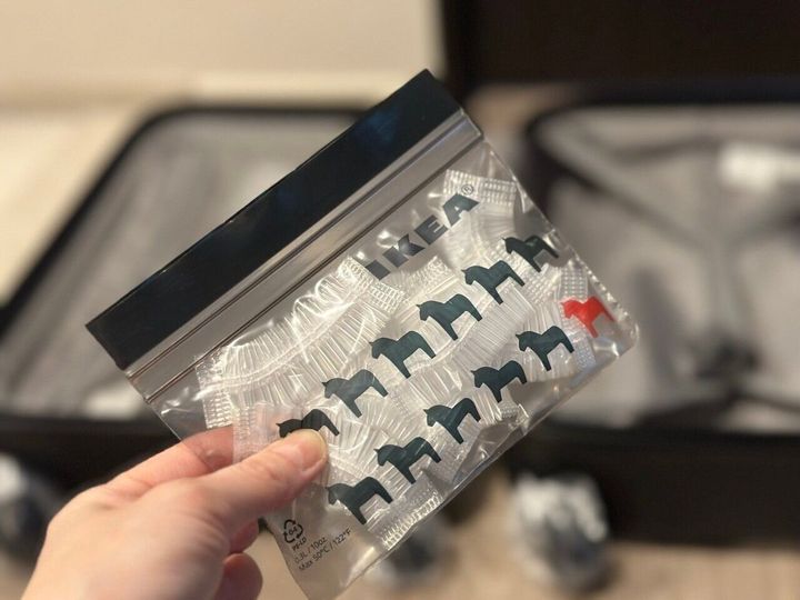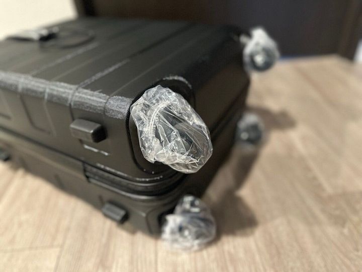 使い方はすごく簡単で、両手でカバーをつまんで広げて、キャスターに被せるだけ!カバーのゴムが結構広がってくれるので、キャスターにカバーを被せやすいです。ゴムがしっかりと広がるので、いろんな種類のスーツケースのキャスターに使えると思いました。使い終わったら、カバーを外してゴミ箱へ捨てるだけ!使い捨てはほんとうに便利です。