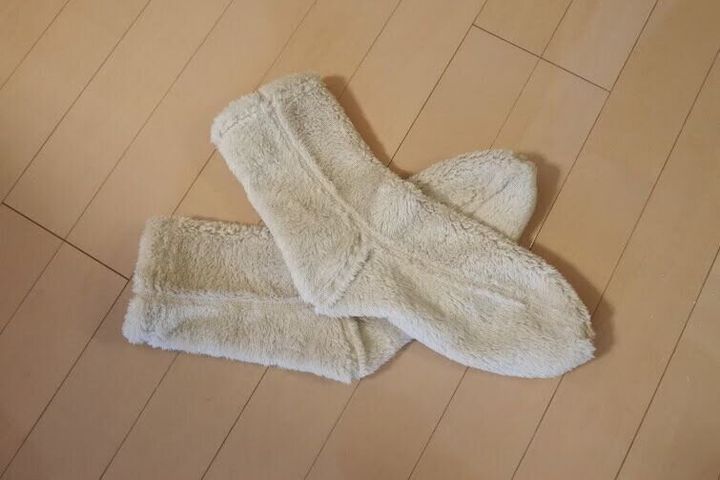 足の冷え対策にオススメの『ボアフリースルームソックス』。お値段は税込み490円です。