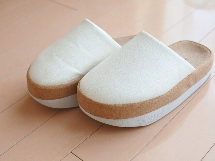 ホワイトにコルクの組み合わせで一見オシャレな普通のスリッパに見えますが