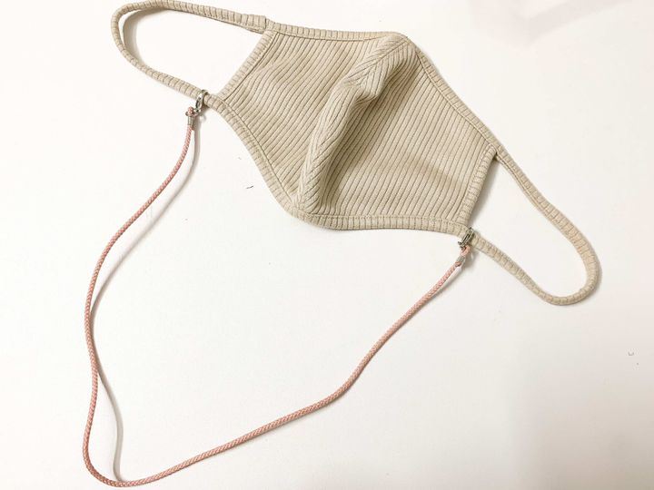 「マスクストラップ」とは、マスクを首から下げられるように、マスクにつけるストラップのことです。