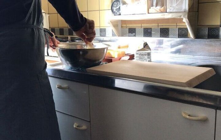 砂糖、バター、卵黄を加えて混ぜ、生クリームで滑らかさを調整しながら混ぜます。