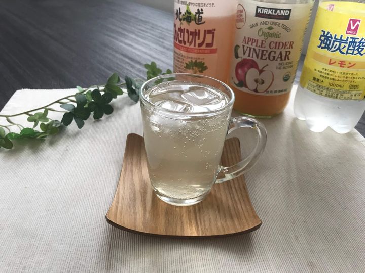 炭酸水では、すっきりし過ぎていて物足りないなぁと思うことがあります。そういう時は、コストコで買った有機リンゴ酢と、てんさいオリゴ糖を足して少し甘みをプラスしています。
