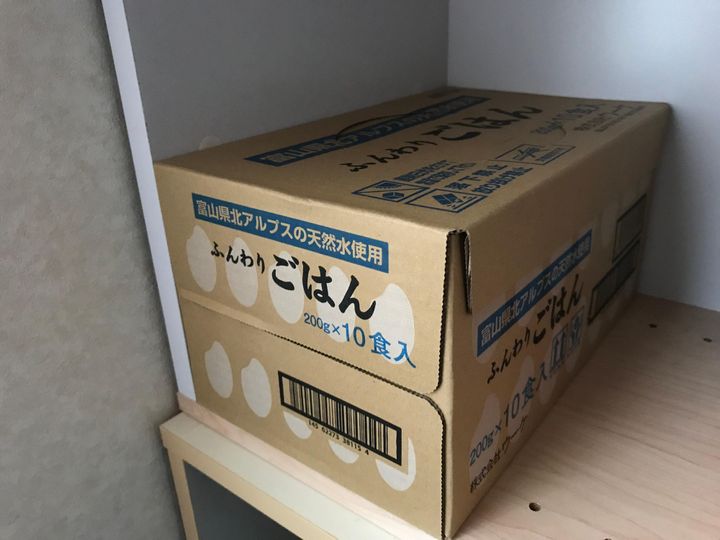キャンプのときや災害時にも、しっかり活躍してくれる「ぱっくご飯」。賞味期限に注意しながら、夫婦2人なので最低10食はストックしておきたいと考えています。