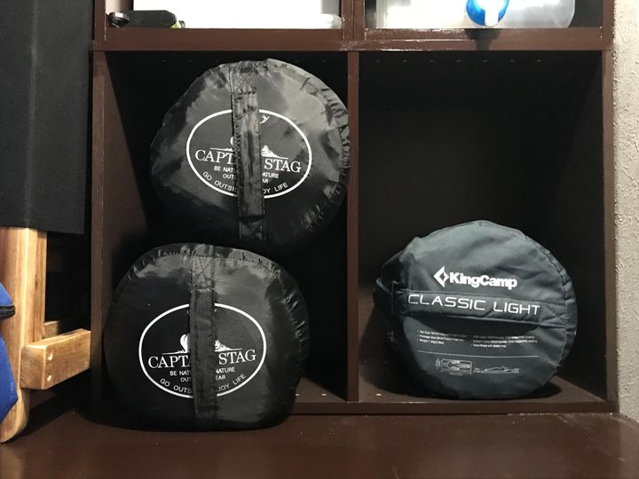 寝袋や一人用のテントなどもあります。買ったはいいけど、どうやって設営するのか分からない、とならないためには普段から使い慣れておく事も大切ですよね。夫のキャンプは趣味でもあるので、普段から使い方や、スムーズに設営するための研究もしています。