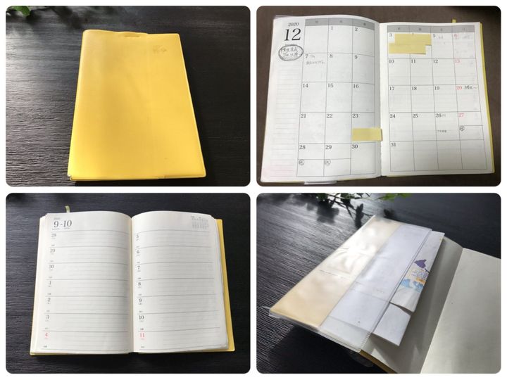 黄色が現在使っている2020年版セリアの手帳。仕事もプライベートもこれ1冊にまとめて記入していました。