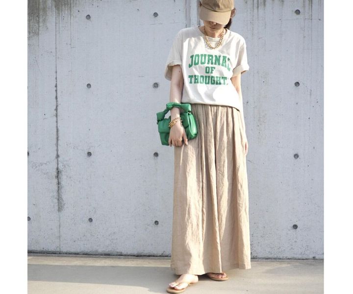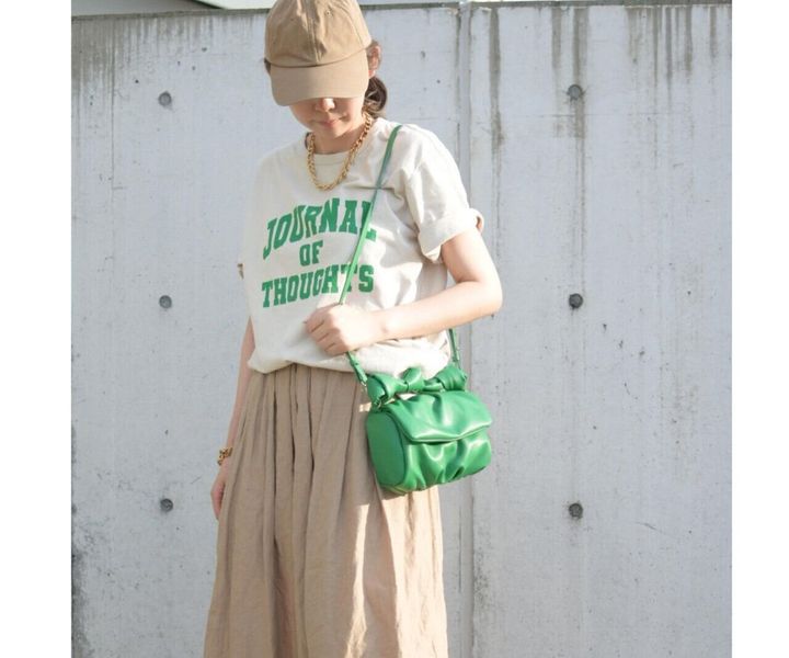 鮮やかなグリーンがコーディネートのポイントになりますよね。