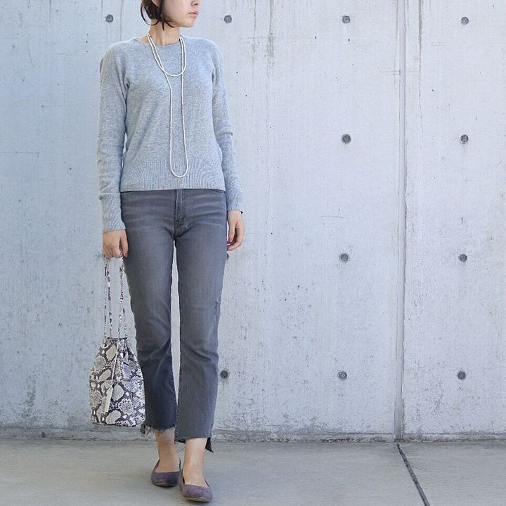 靴までトーンをあわせるとシンプルなスタイルがぐっとおしゃれにみえますよ。