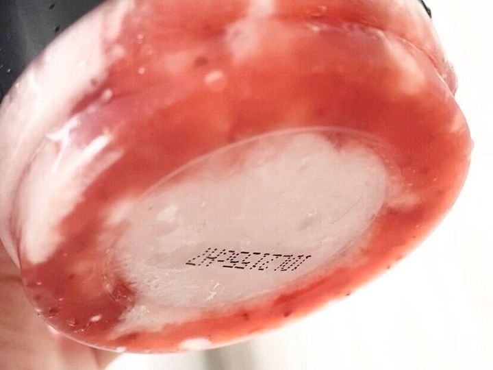 下の方に、いちごの果肉がギッシリ詰まっているので、良くかき混ぜて飲むと、とても美味しいです。