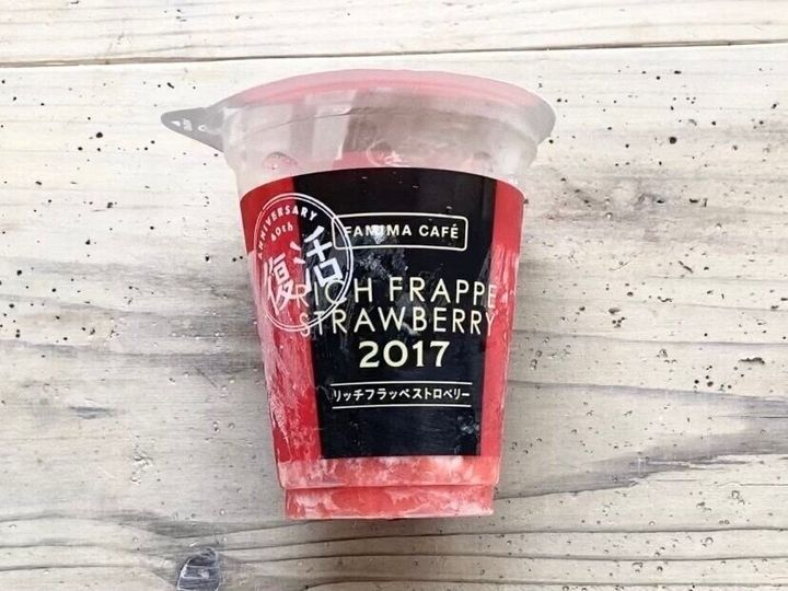 2017年に登場し、歴代ストロベリーフラッペで最も多く売れた(52700000個)「リッチフラッペストロベリー」を4年ぶりに復活させたそうです。