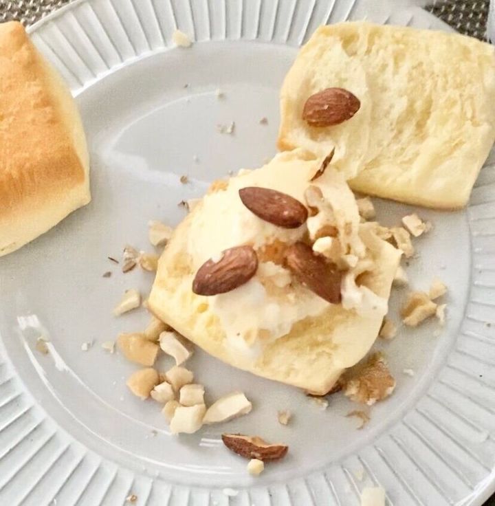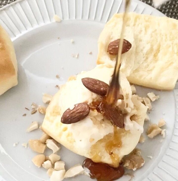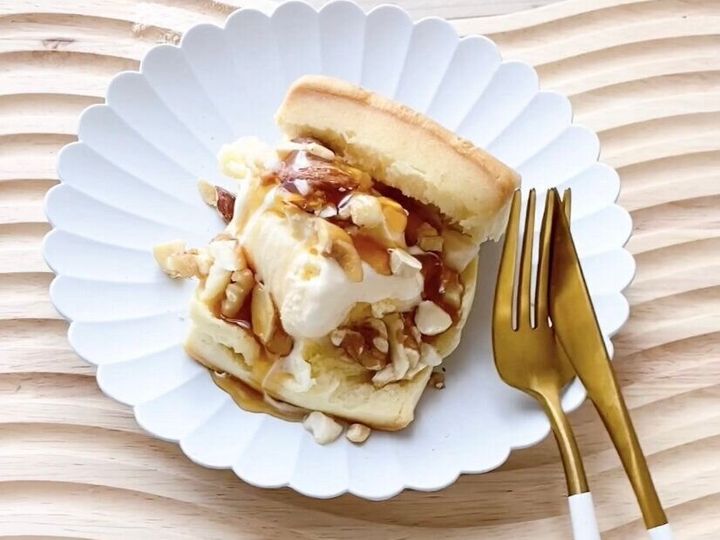 あっという間に完成です。暖かいビスケットに、冷たいアイスが最高に美味しいです。出来立てを家族に出した所、とても喜ばれました。