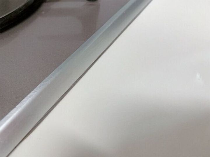 我が家はガスコンロですが、コンロと作業台の間の隙間にクズが溜まるのが気になっていました。そこで、SNSで見かけたIHの隙間汚れをガードするシリコーン製ヒモをかませる予防掃除をしてみました。