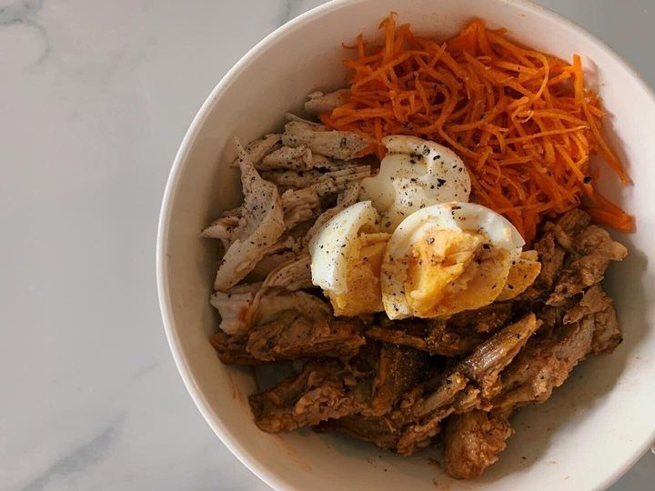 卵や野菜などをトッピングして、どんぶりでいただきます!