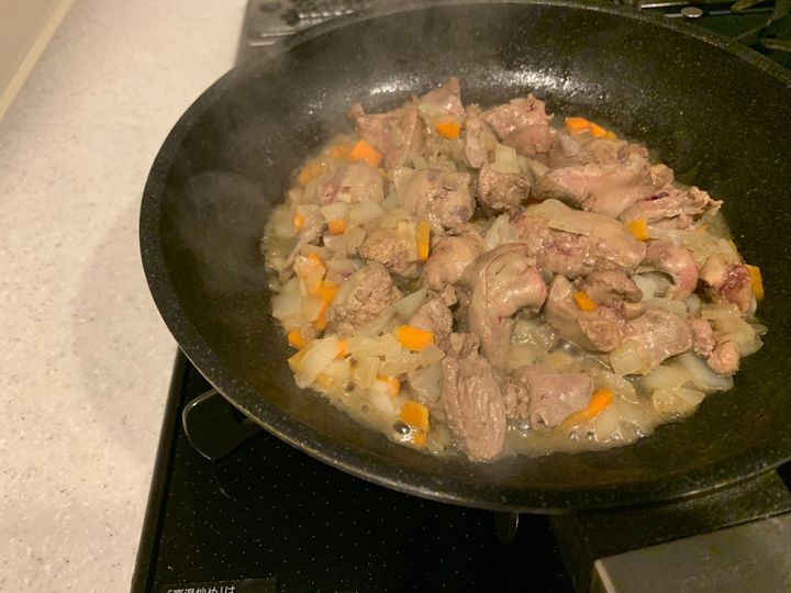 (蓋して煮ると、水分多めで柔らかいレバーペーストになります)