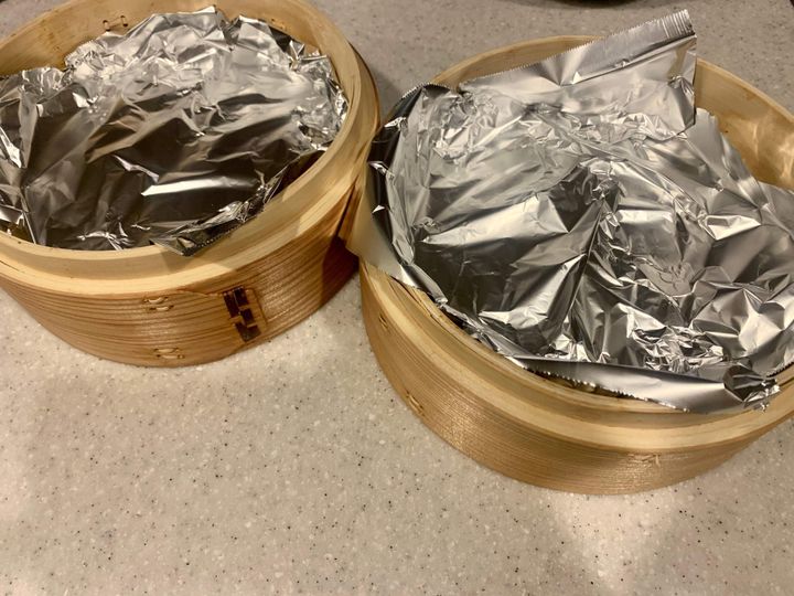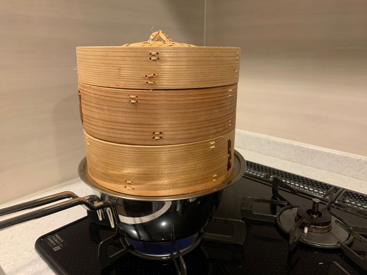 せいろを濡らし、キャベツやクッキングシート、アルミホイルを敷き、食材を並べて準備完了。鍋にお湯を適量沸かし、せいろを置いて10〜20分蒸すだけです。専用の鍋もありますが、家にある鍋で代用できます。