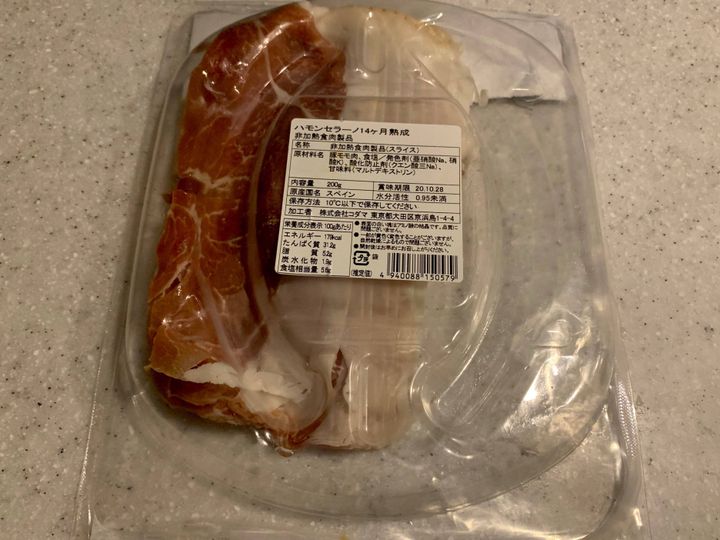 普通の生ハムはしょっぱいものも多いですが、ちょうどいい塩気ですごくおいしいです。脂がとろんと溶けて濃厚な味わい、という感じです。塩気が強すぎる生ハムはあまり好きではないのですがこれは別格でした。