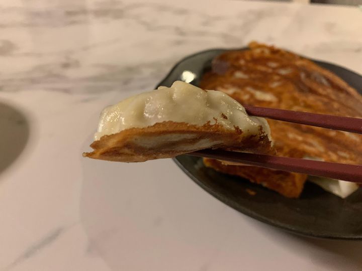 羽はパリパリに焼けていて、皮はもちもち、肉汁がじゅわ〜の餃子です。冷めてもおいしいですよ。この値段でこんなにおいしい餃子が食べられるなんてびっくり。本当におすすめです!