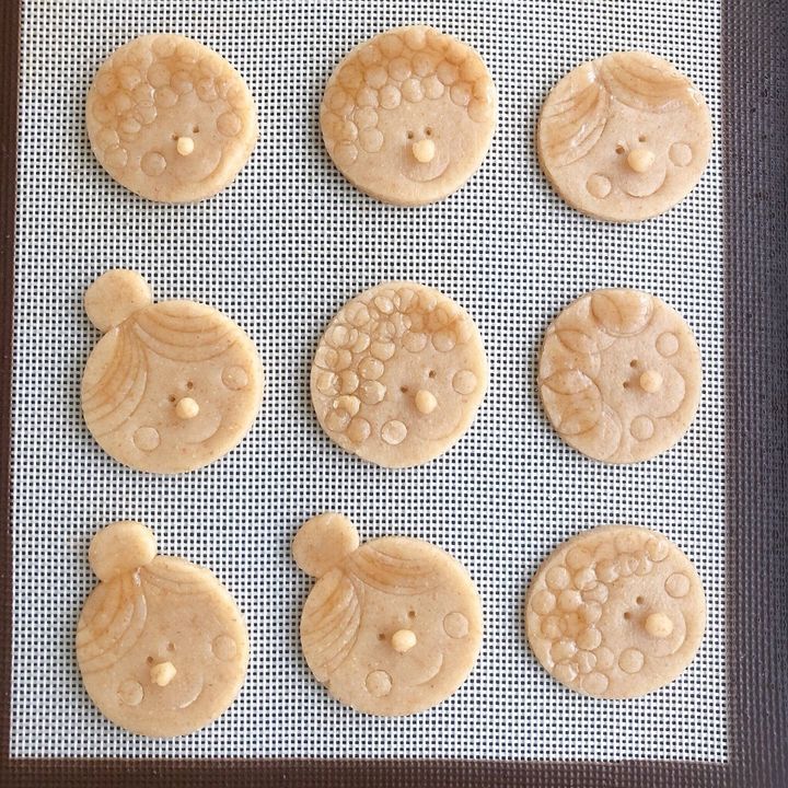 鼻やお団子ヘアは型抜きしたときに残った生地を使っています。