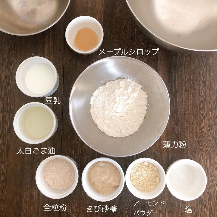 1)Aはまとめてふるい、大きめのボウルに入れる