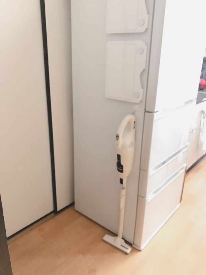 我が家は掃除機をコードレスタイプに変えて冷蔵庫の横に設置しました。
