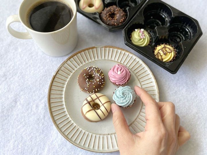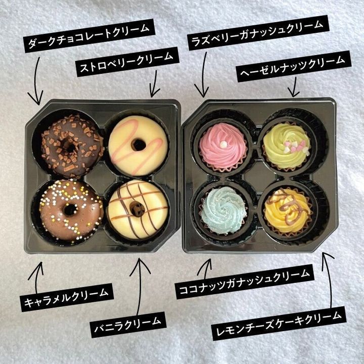 ベルギーのラ・フロンティエールドーナッツ風チョコレートとカップケーキ風チョコレート。