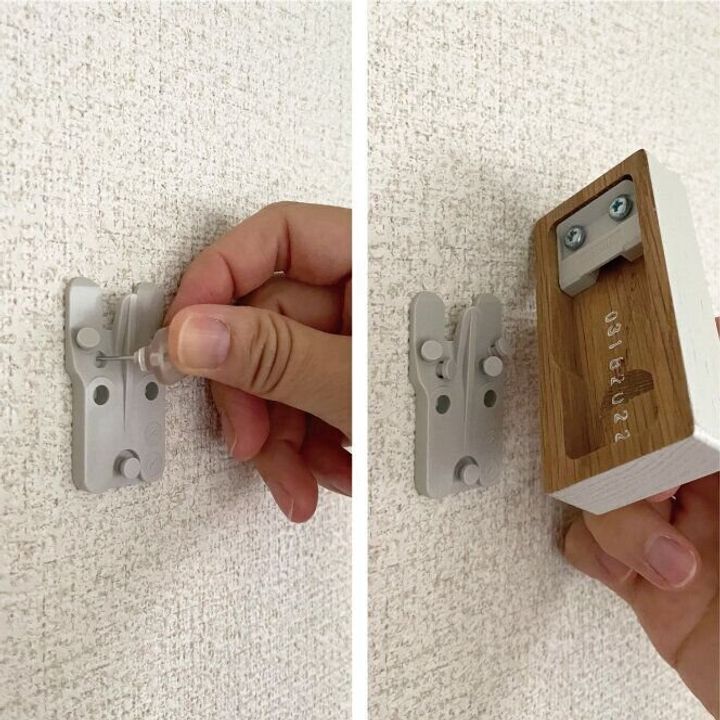 壁に専用フックを取り付け、本体裏の受け部分を引っ掛ければ完成です。