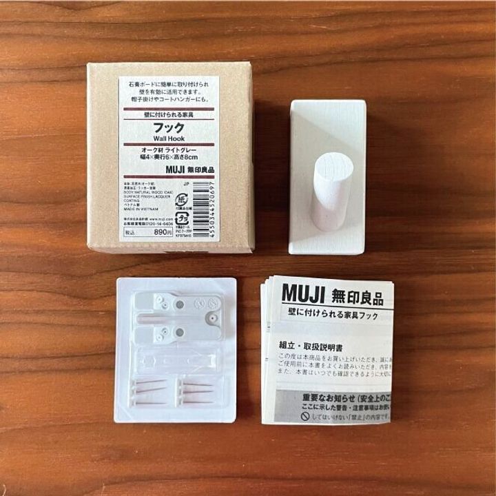 今回私が購入した「壁に取り付けられる家具フック(オーク材/ライトグレー)」(税込890円)です。