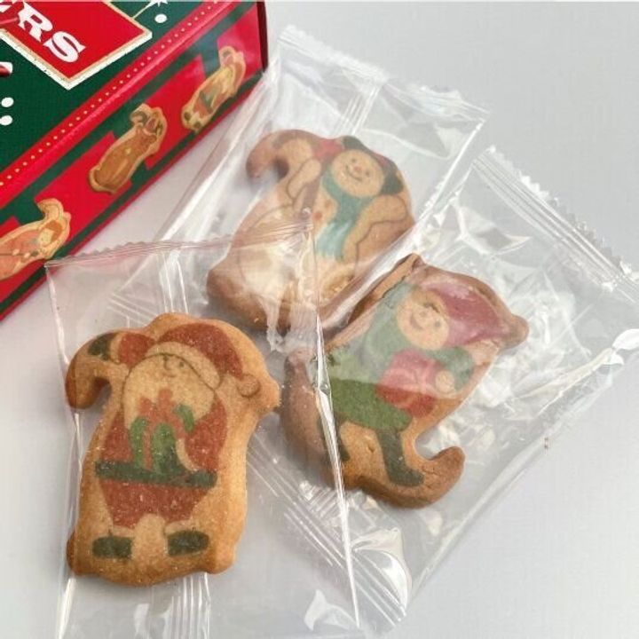 クリスマスをモチーフにしたクッキー。サンター、トナカイ、スノーマン、エンジェル、ニッセの5枚入り。クッキーは個包装になっているので湿気の心配もありません。ケーキのトッピングとして使う以外に、カップにちょこんとひっかけられちゃう技ありクッキー!クリスマスデザインが可愛いサクサクなクッキーでおやつ時間がさらに楽しめますよ。