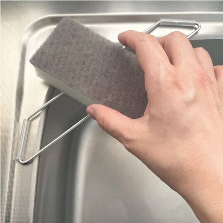 このシンクラックはスポンジを挟んだり乗せたり2通りの方法があります。ただし、使いこんだスポンジやスポンジの厚み、サイズによって隙間から落ちる場合もあるので注意が必要です。