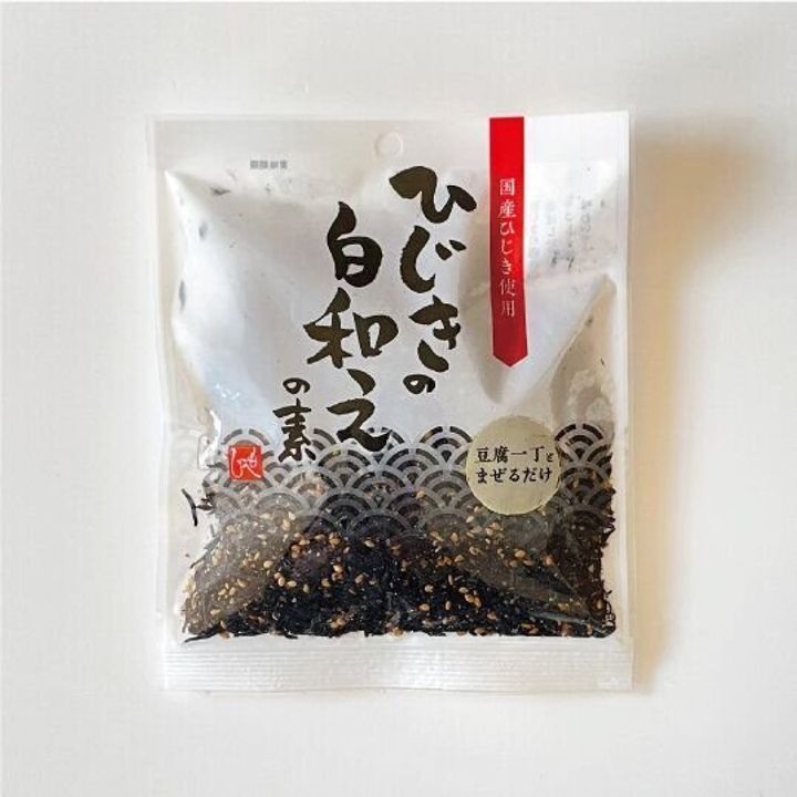 最近では、水戻し不要なひじきの商品を見かけますが「ひじきの白和えの素」も水戻し不要。しかも、すでに味が付いているので下ごしらえや味付けの手間もいりません。