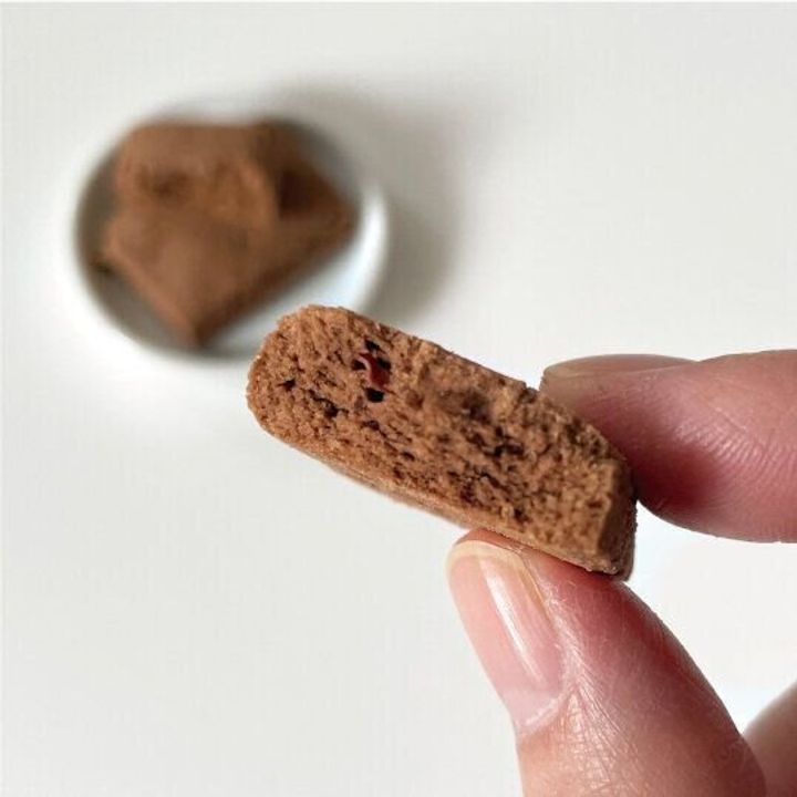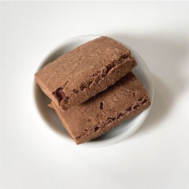 ココアパウダーとカカオニブが練り込まれた、ほろ苦いサブレです。ほんのり甘いココア生地のなかに、カカオ豆をローストして細かく砕いたカカオニブの苦味と、プチプチした食感がアクセントとなり、おいしさをより引き立てます。甘さ控えめなので、おやつや空腹時におすすめですよ。