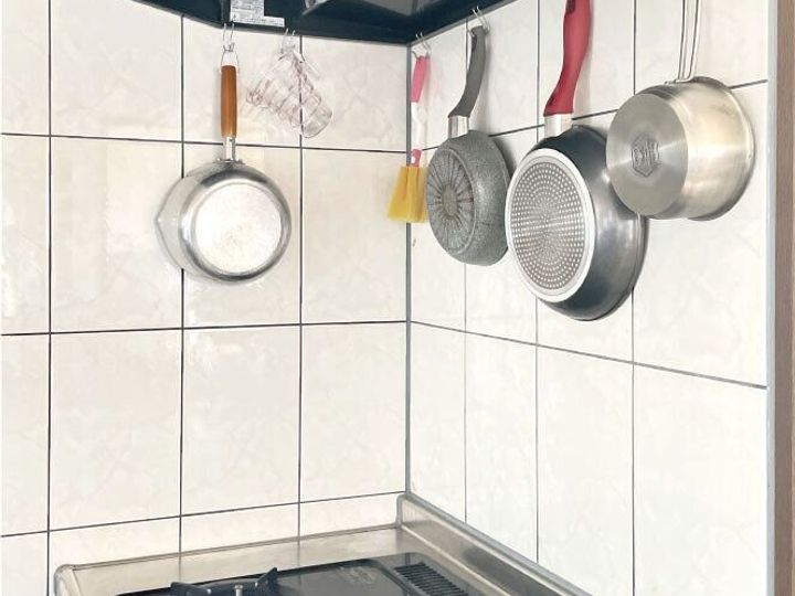 横ブレしにくいのでストレスなく毎日使うフライパンや鍋を引っ掛けています。