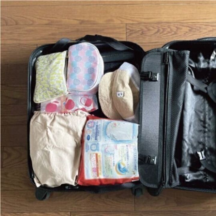 我が家の泊まり旅行では基本スーツケース(約30L)に息子と私の分をひとまとめにしています。手提げやリュックだと、手持ちの数が増えて煩わしくなるからです。また、スーツケースなら目的地到着後はパカッと開きっぱなしで中身が分かる状態にしておくので、ズボラな私にピッタリです。