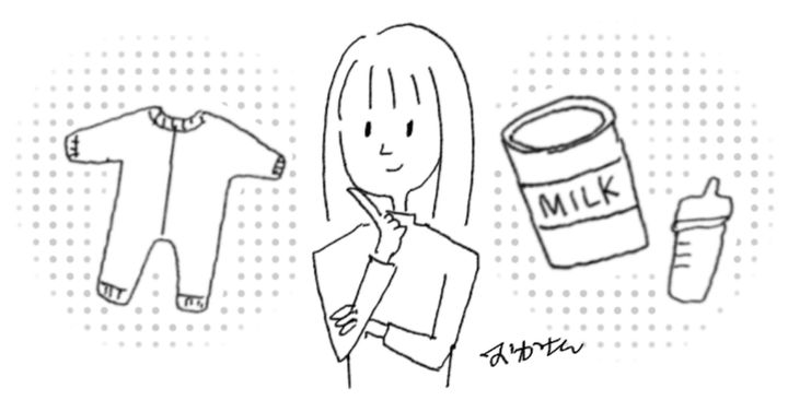 オムツやお尻ふき、服やバスタオル、マタニティパジャマ、衛生用品など
