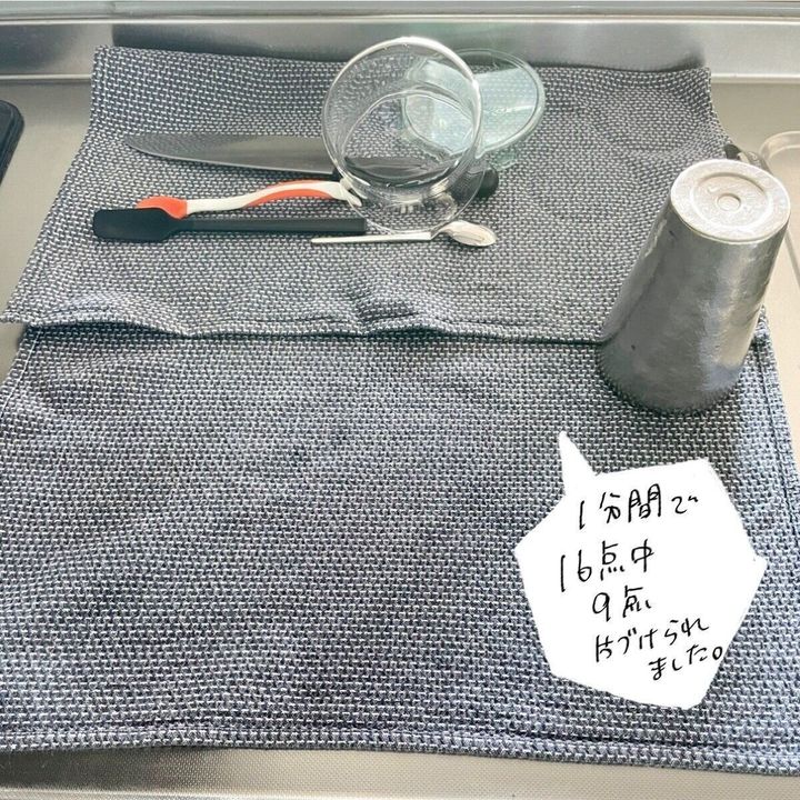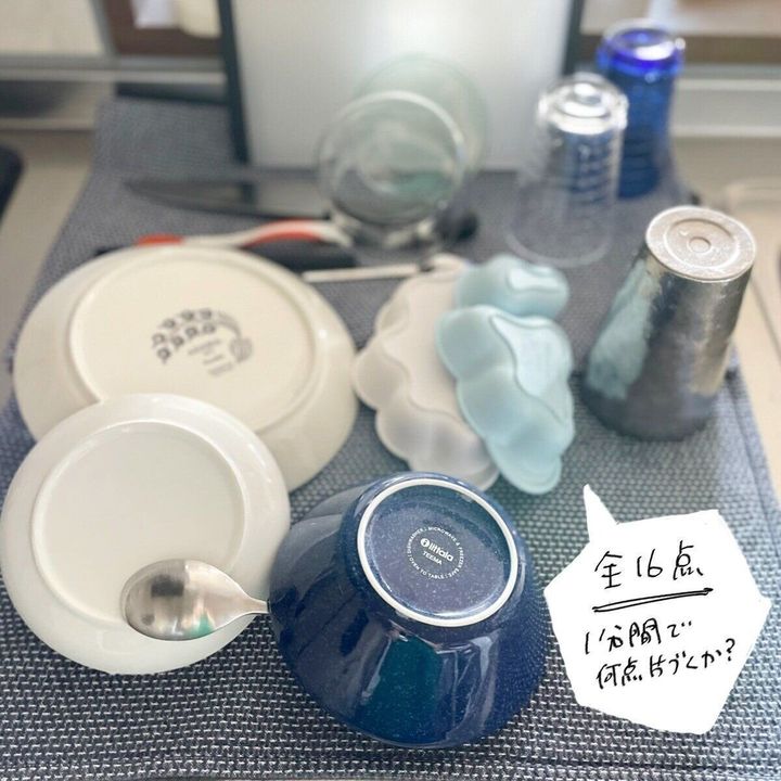 1分で16点のうち9点片づき、2分で全ての食器と拭き掃除まで終える事ができました。