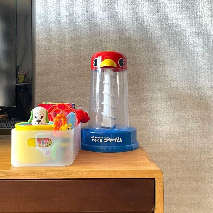 息子は毎日おもちゃで遊ぶので引き出しなどで隠す収納より