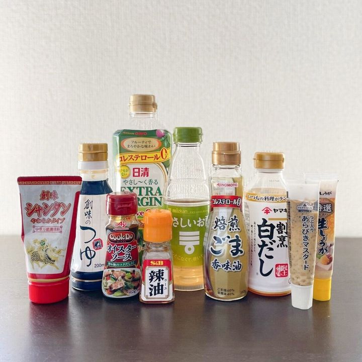 オリーブオイルや醤油、塩、胡椒、酢、マスタードなど